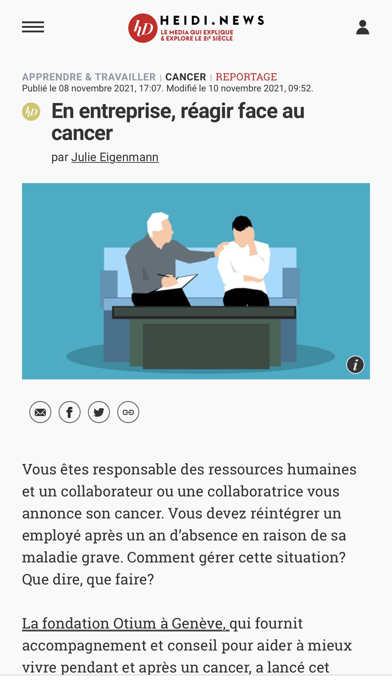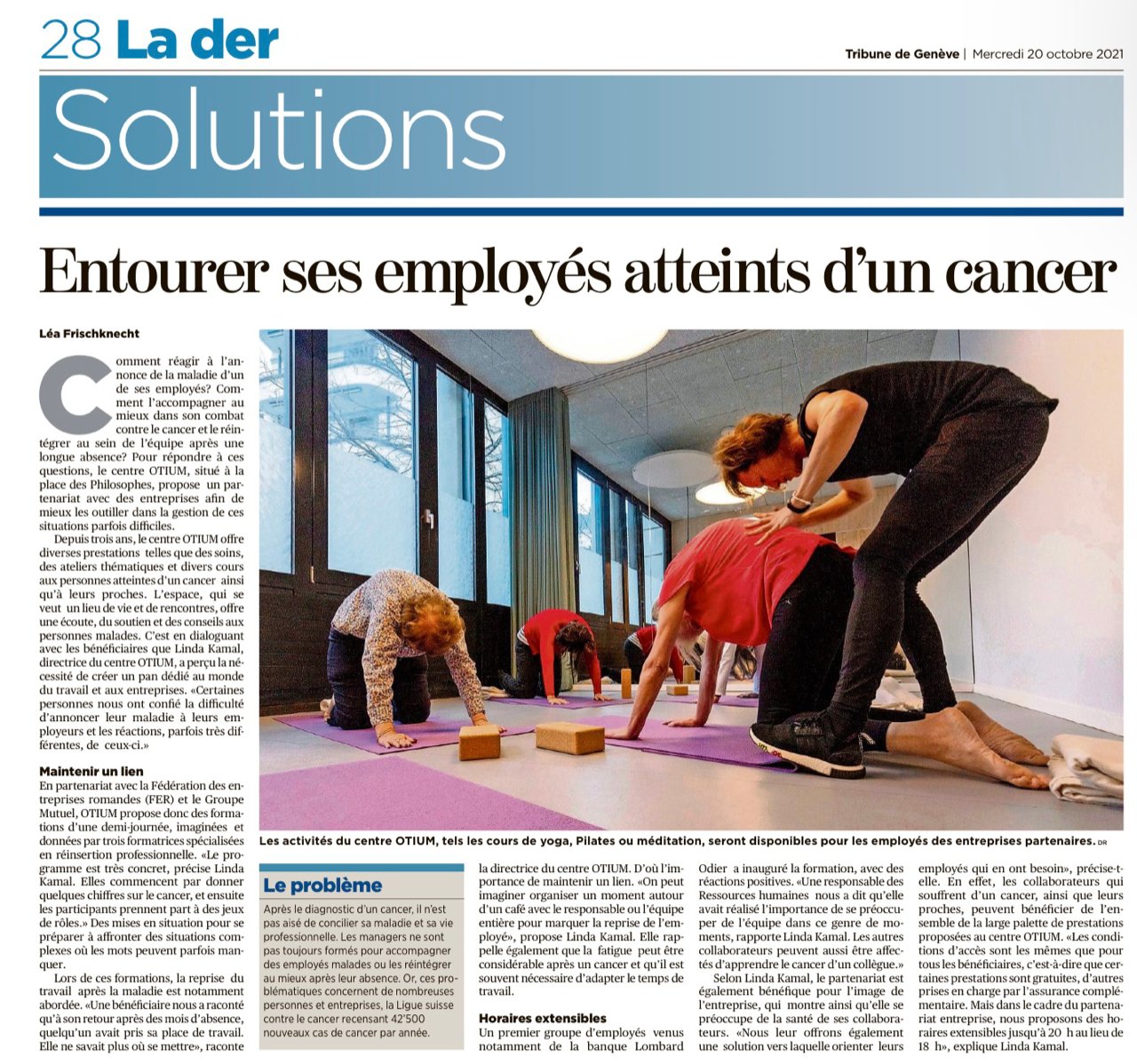 • Focus Santé (supplément thématique de la Tribune de Genève et 24 Heures) – Aider à mieux vivre pendant et après le cancer